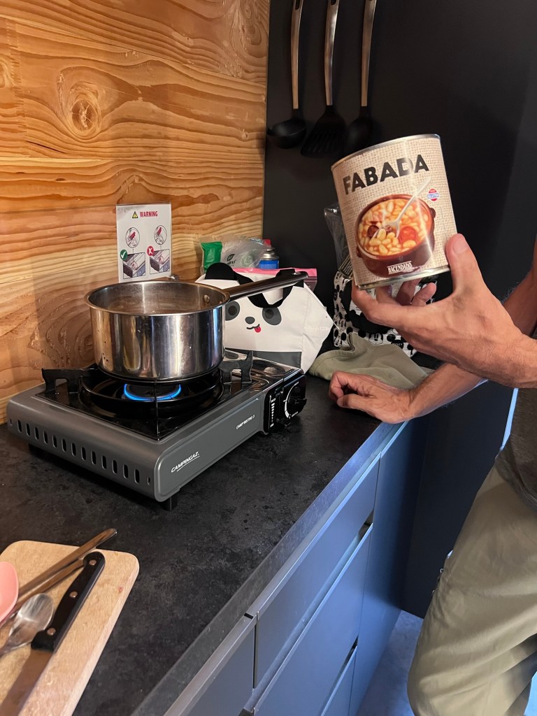 We had a can of Asturian Bean stew that we bought at the Mercadona supermarket and it was actually really good! Not bad for like $3!!!