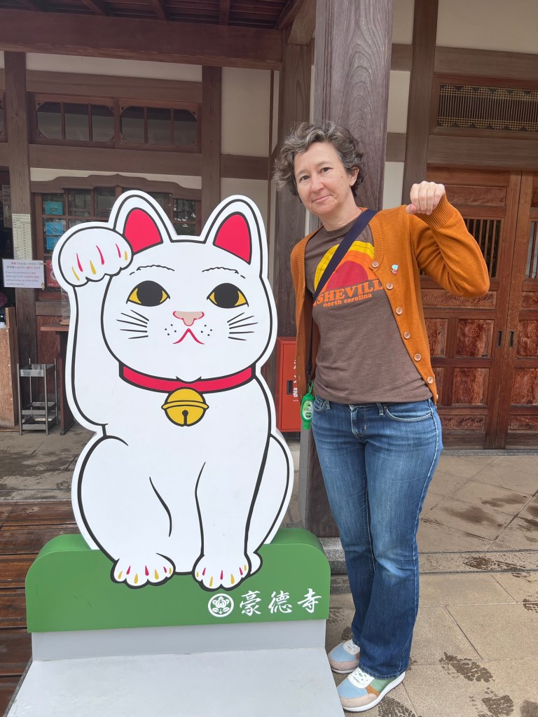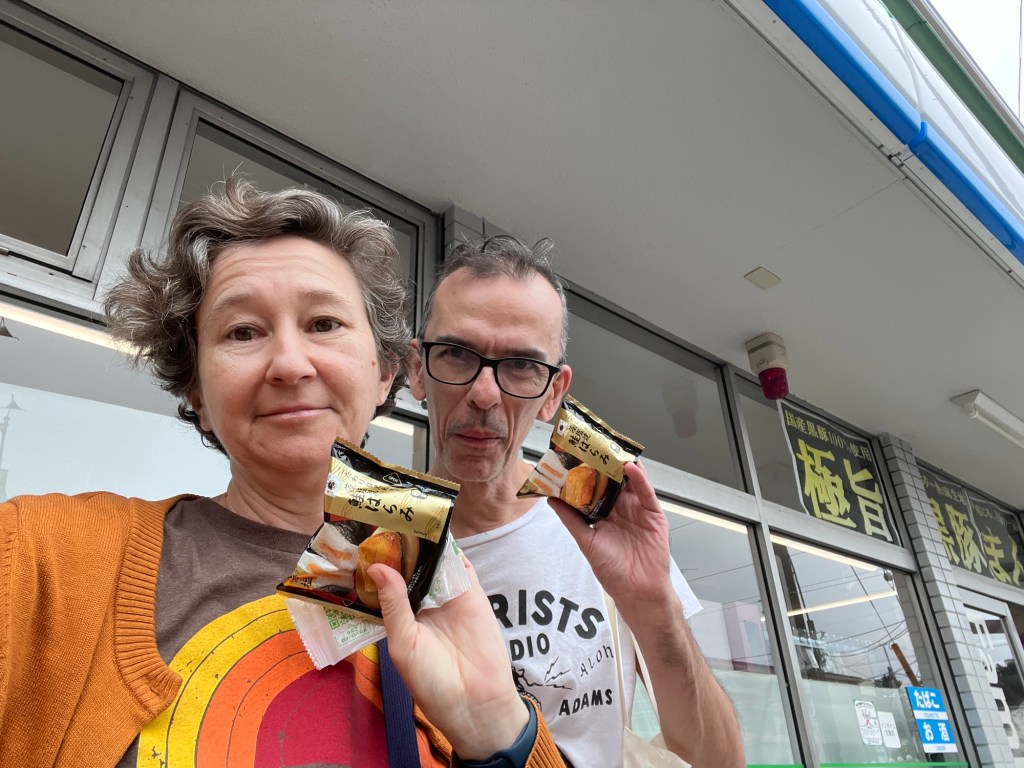 We had onigiri lunch outside the Family Mart and saw another temple. Also we managed to get on the cat train at one point.