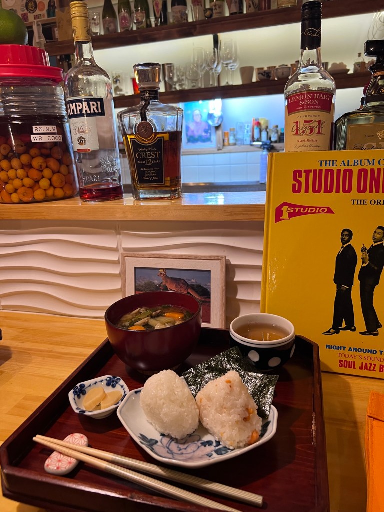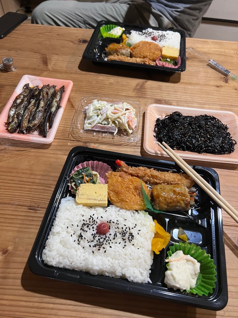 Breakfast at our very awesome accomodation- onigiri and miso soup with local veggies. Delicious!